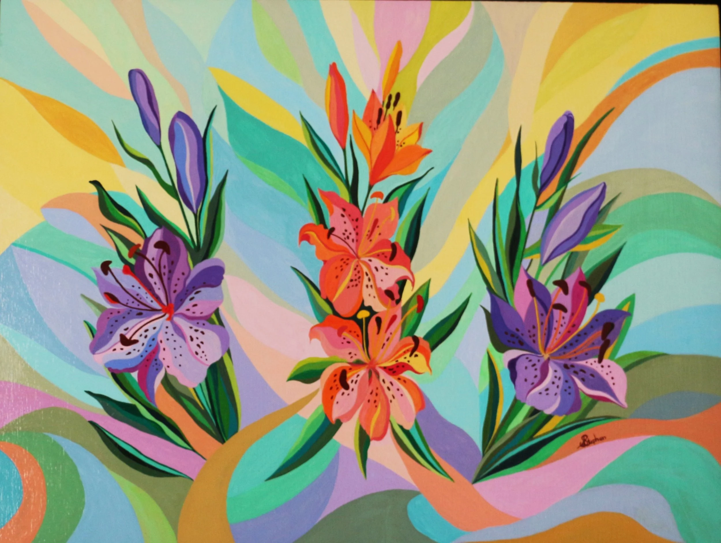 She currently lives in London, Ontario, and is still exploring her art techiques in various media and enjoys travelling.